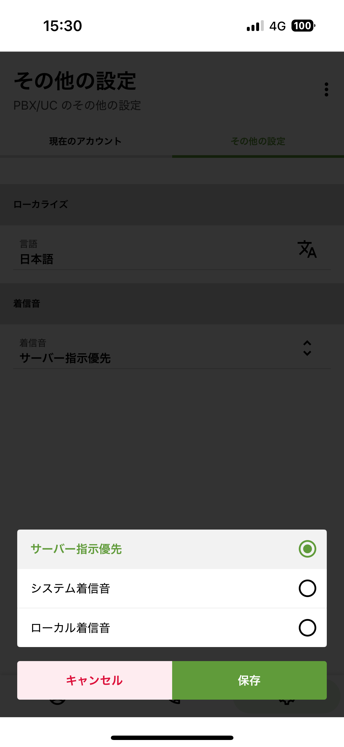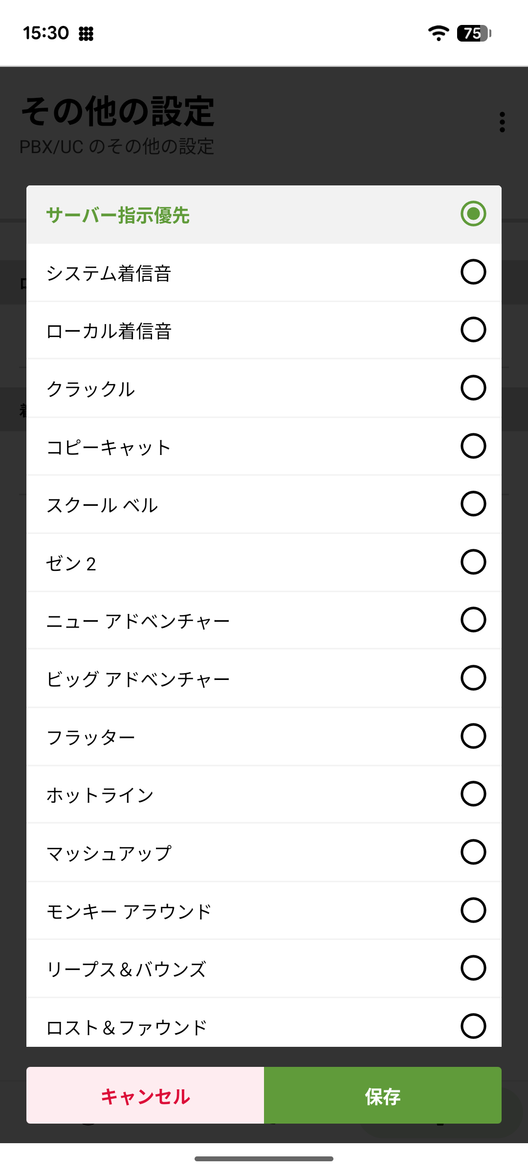 – サーバー指示優先:サーバー(PBX)からの着信音指示を優先して適用されます。(デフォルト設定)