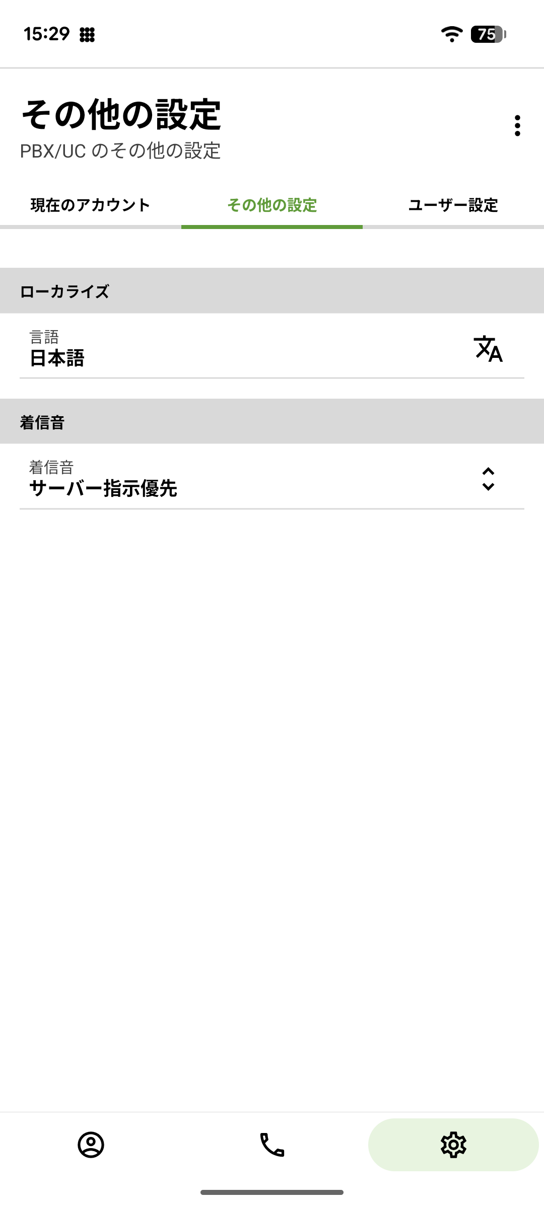- Brekeke Phoneアプリケーションで、[その他の設定]画面を開きます。